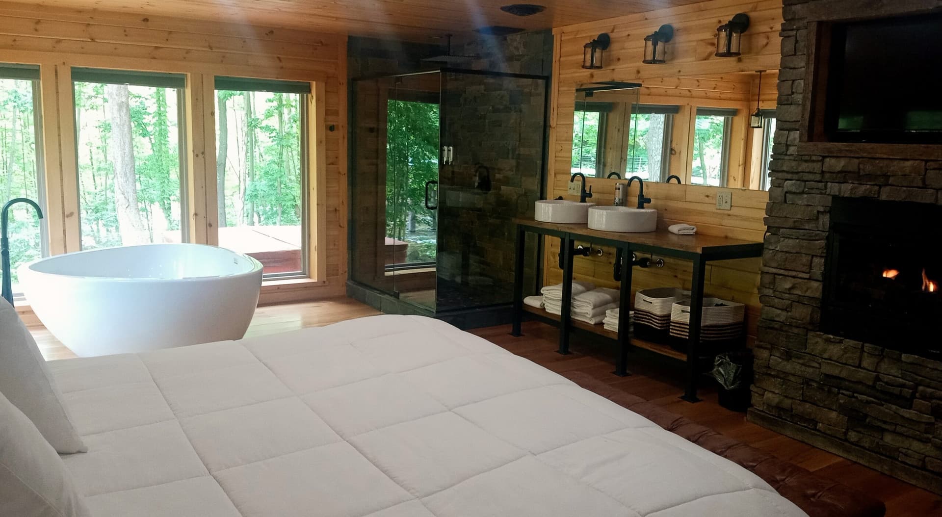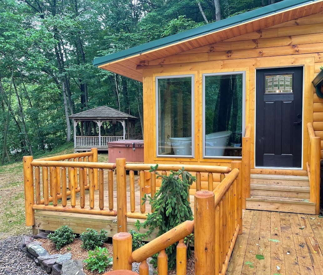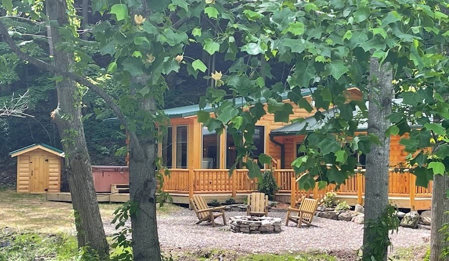 Golden TroutPerfect for a romantic escape or peaceful solo retreat, a cozy 1-bedroom log cabin featuring a King-size bed and a full bathroom. Relax in the Jacuzzi tub, or unwind by the warm glow of the gas log fireplace while streaming your favorite shows on the satellite Roku TV. Step outside to enjoy the private outdoor hot tub, charcoal grill, and a log bench, surrounded by the serenity of the mountains.