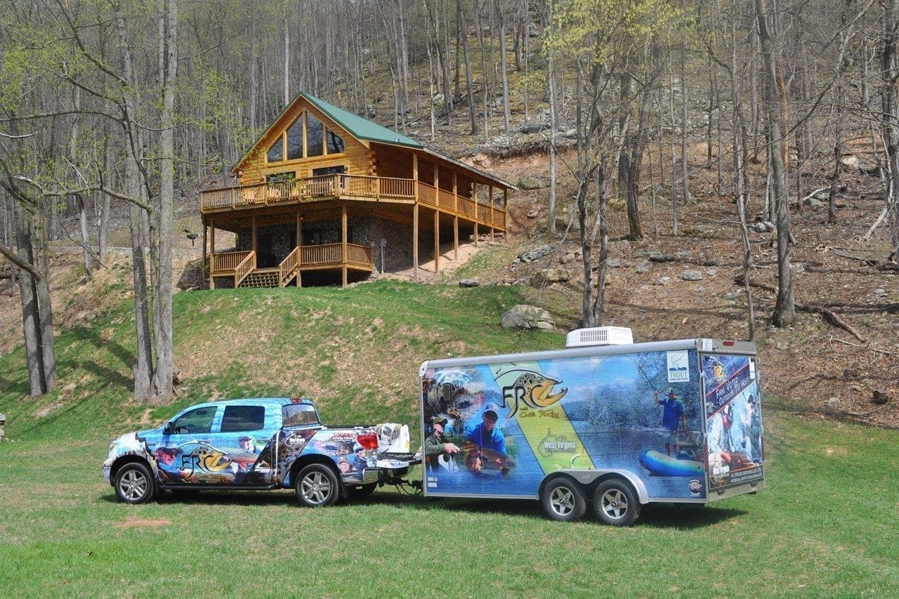 Fly Rod ChroniclesLuxury log cabin with four bedrooms, a loft, three baths, kitchen and a great room with a rock fireplace, basement with 50″ TV and Pool Table. The spacious loft contains the master bedroom and a bath. The two bedrooms downstairs share a bathroom. The basement has a bedroom and bathroom. One of the best locations for fly fishing in the mid atlantic.