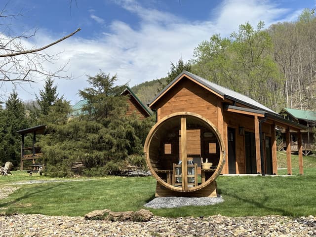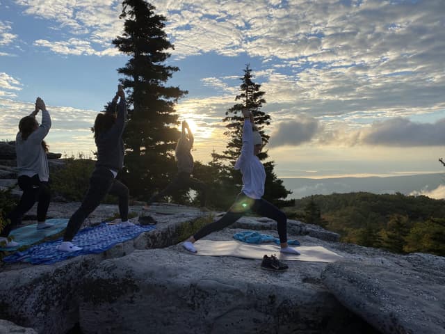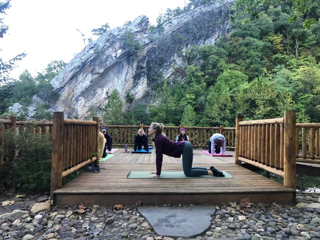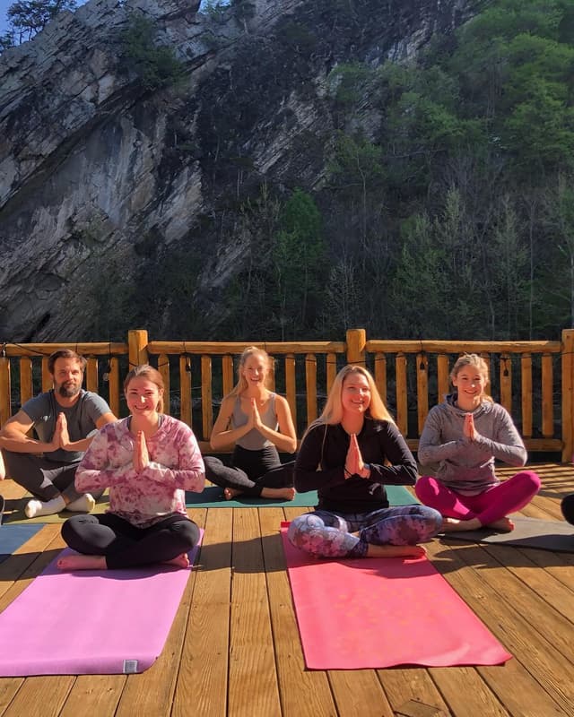 Outdoor yoga sessions at Harman's Log Cabins in West Virginia.